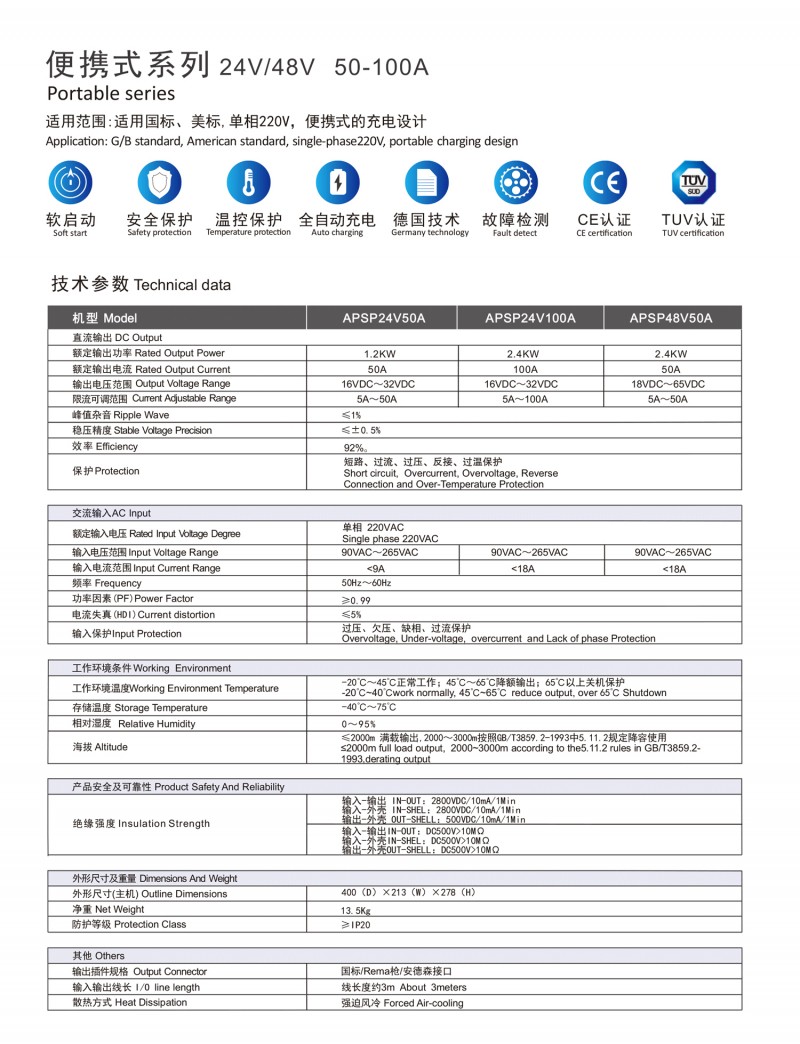 觸摸屏智能操作設(shè)計:告別傳統(tǒng)按鍵方式,給您帶來更現(xiàn)代更具科技智能的操作體驗 自動充電:插槍自動充電,簡化充電流程,便于操作 兼容性高:80V200A兼容48V200A充電 多重保護(hù): 輸出短路,過流過壓保護(hù),反接保護(hù),電流導(dǎo)管保護(hù)等多重保護(hù) 預(yù)約充電功能:避開高峰用電時段,有效節(jié)省成本 雙語切換:中英文雙語隨需切換,跨越語言障礙,與世界接軌 人性化設(shè)計:充電機(jī)背板內(nèi)部附部件明細(xì)及產(chǎn)品接線圖,方便客戶可更清楚的了解產(chǎn)品,便于維修,提高售后時效 獨特設(shè)計: 內(nèi)置電磁鎖驅(qū)動模塊,防止臨時斷電鎖槍 使用壽命更長:功率模塊預(yù)留20%空間,提高模塊的使用壽命 出色內(nèi)部結(jié)構(gòu): 內(nèi)部結(jié)構(gòu)左右出風(fēng),內(nèi)部電路不容易積粉塵,提高充電機(jī)壽命