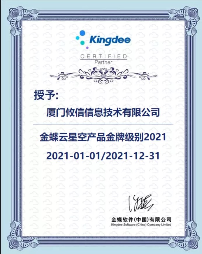 發(fā)證機構:   金蝶(軟件)中國有限公司 發(fā)證時間 :   2021-01-01