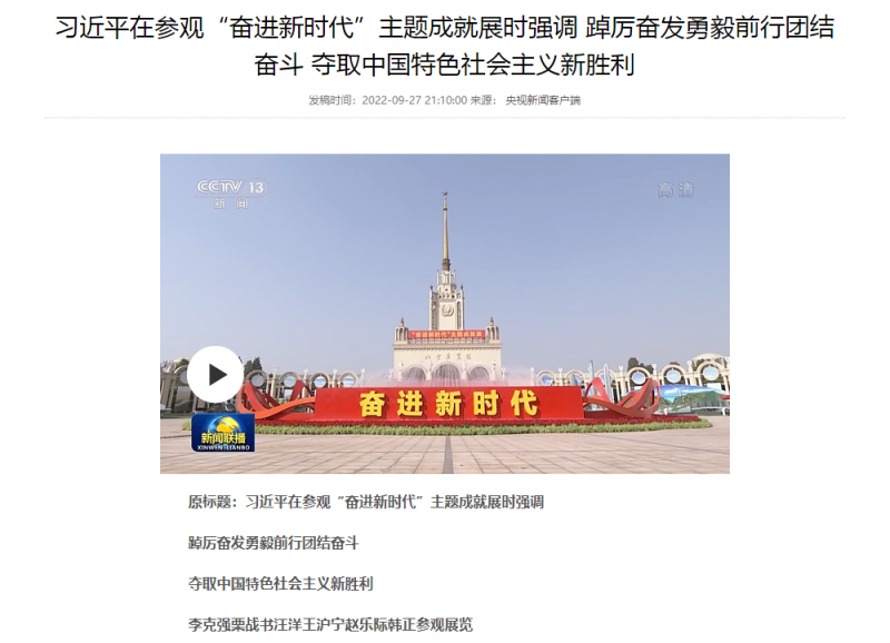 核心提示:9月27日,奮進新時代主題成就展在北京展覽館開幕。截圖來源央視新聞客戶端聚焦新時代10年來國家的偉大成就變革,展覽宣傳了10年