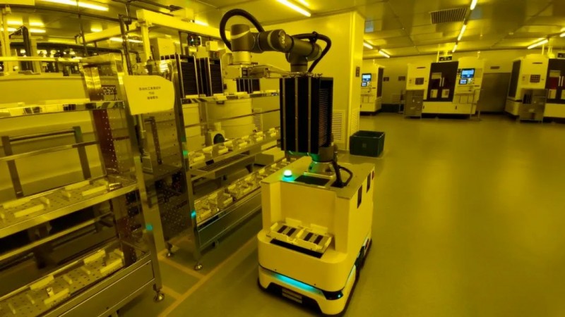 優(yōu)艾智合應(yīng)用彈夾轉(zhuǎn)運機器人,在黃光一體化車間“印刷-顯影-曝光”工藝流程間的自動上下料、空籃回收、緩存管理作業(yè)。