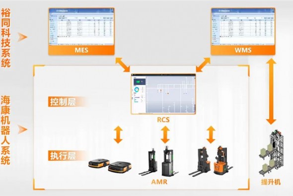 目前已部署潛伏和叉取系列機器人,共計近300臺AMR運行在智能工廠中,覆蓋3個樓層,涉及原材料倉儲、車間產線配送、成品倉儲。
