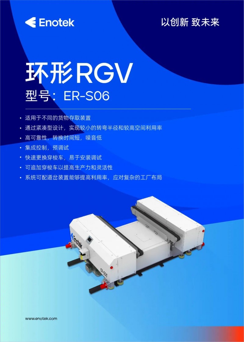 安歌科技Enotek作為一家以創新驅動的全鏈路工業智能物流解決方案提供商,秉承著“以創新,致未來”的理念,將創新與智能作為企業底色,不斷開拓進取,持續豐富產品線,為客戶帶來更多樣化的選擇。繼9月連續發布了牽引式AGV EA-Q50、平衡重式AGV EA-D15兩款新品后,最新的環形RGV ER-S06也于近日正式發布。