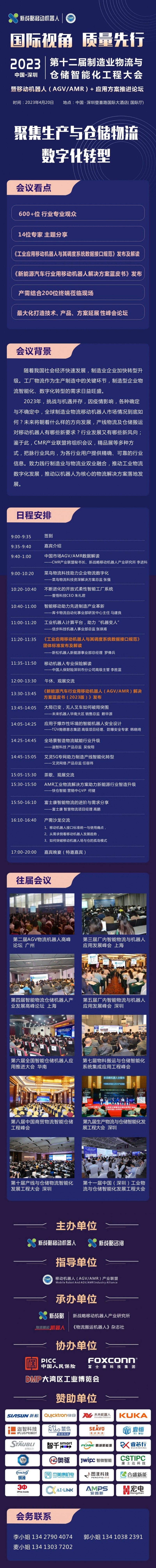 4月20日,由新戰略移動機器人以及新戰略咨詢聯合主辦的2023第十二屆制造業物流與倉儲智能化工程大會暨移動機器人(AGV/AMR)+應用方案推進論壇將在深圳重磅舉行,論壇上,除14+主題演講外,還將重磅發布《新能源汽車行業用移動機器人(AGV/AMR)解決方案藍皮書(2023版)》。同時,《工業應用移動機器人與其調度系統數據的接口規范》也將在會上發布!