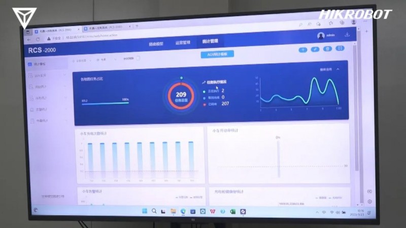 管理員可通過海康機器人RCS系統(tǒng)對AMR的運動路徑、搬運任務(wù)進行合理規(guī)劃,并對任務(wù)執(zhí)行情況進行數(shù)據(jù)統(tǒng)計,使零部件和成品的出入庫數(shù)量清晰可觀,以便對倉庫物料進行冷熱度動態(tài)管理。