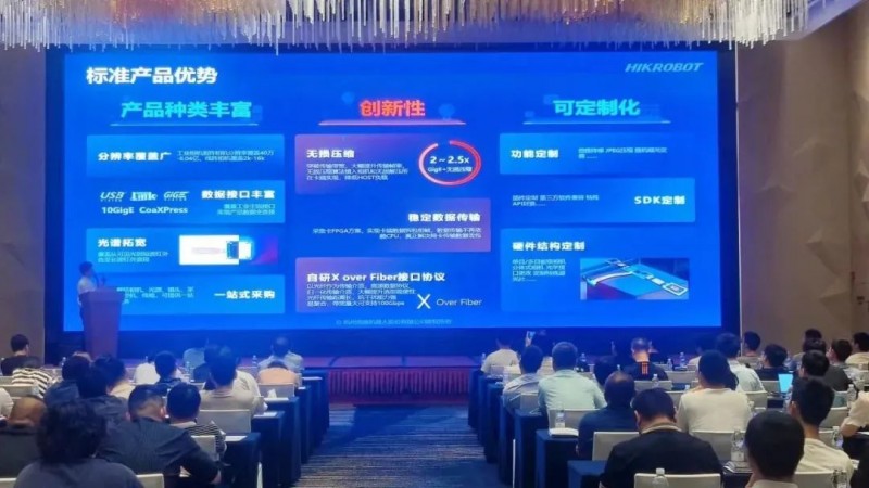 標(biāo)準(zhǔn)產(chǎn)品線帶來了突破帶寬限制的全新數(shù)據(jù)接口X over Fiber,及系列線陣相機、面陣相機和高光譜相機、采集卡等新品,特別指出了標(biāo)準(zhǔn)產(chǎn)品的創(chuàng)新性、可定制化、產(chǎn)品種類豐富等優(yōu)勢。