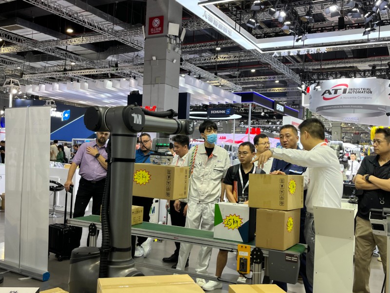 TM AI Cobot S系列產(chǎn)品線新增TM25S,負載提升至25公斤,可應對更多大型工件取放應用。與市場上其他 25 公斤級協(xié)作型機器人相比,除自身重量比較輕以外,還具有更長的臂展范圍。達明機器人內(nèi)建視覺系統(tǒng)搭配外部 3D 相機,結合 3D 及 AI 智慧辨識技術,實時偵測混箱卸棧中箱體大小與位置信息,無需事先指定棧型,可隨意擺放,也可應付傾斜、緊貼或具有膠帶包覆等復雜情況。