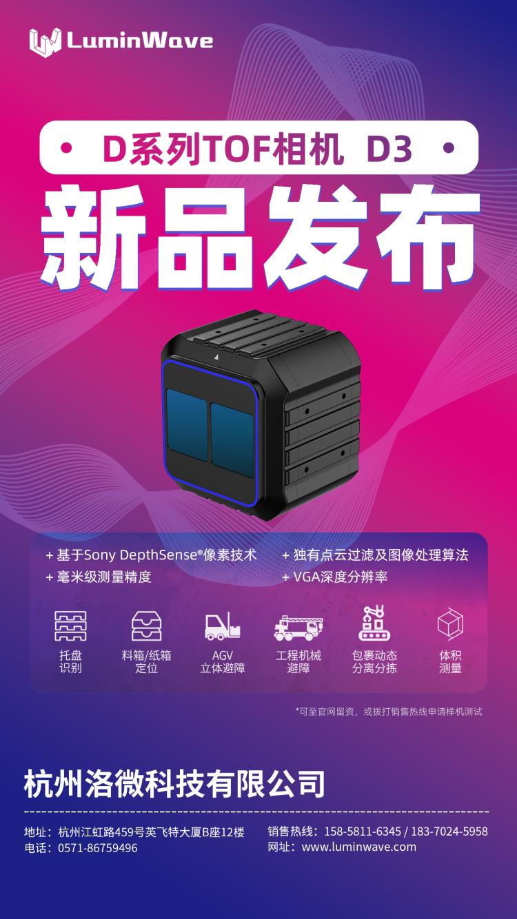 隨著工業(yè)自動(dòng)化、物流科技、移動(dòng)機(jī)器人領(lǐng)域?qū)ψ詣?dòng)化、智能化需求的逐漸提升,更高精度、更智能的感知需求也在不斷增長。洛微科技全新高性能D系列TOF相機(jī)D3的高精度、高性能及廣泛的應(yīng)用場景,將會(huì)為客戶帶來更好的產(chǎn)品體驗(yàn)和更大的商業(yè)價(jià)值。