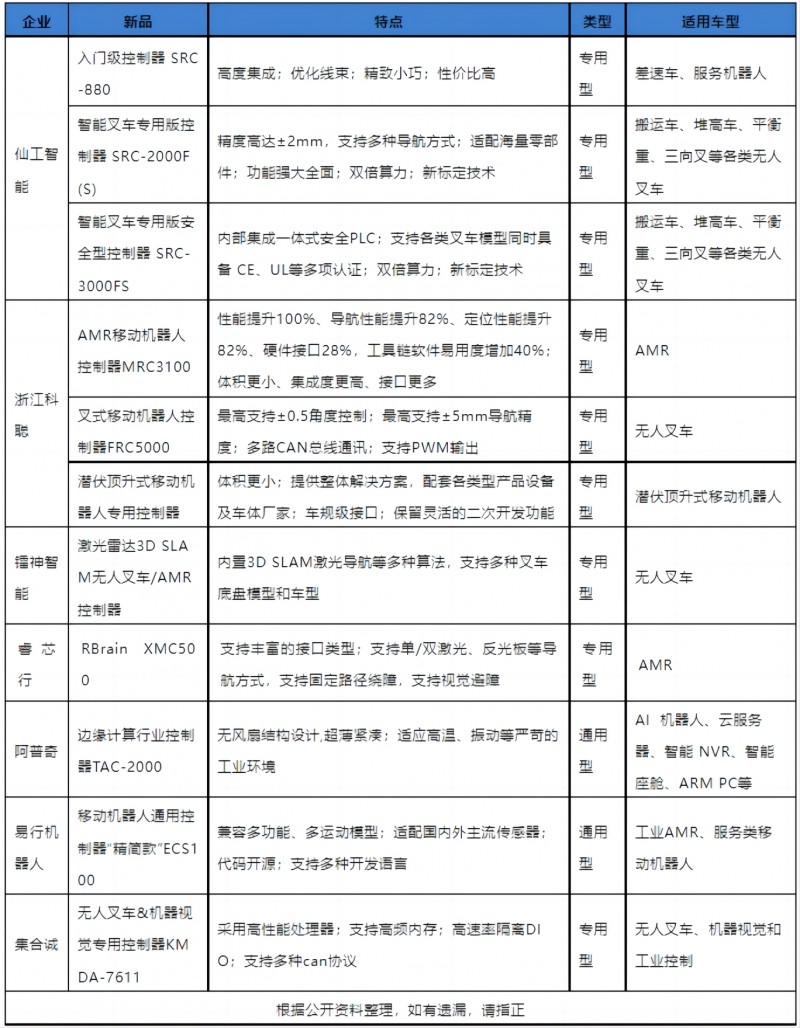 總體來看,隨著移動機器人專用控制器應用的深入,控制器廠商對于機器人應用場景理解也逐步加深,系列產(chǎn)品的精細化程度有所提高,同時,對于高集成度、功能安全更為重視。