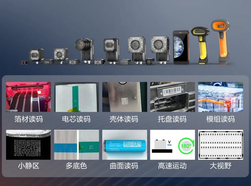 追溯鋰電生產(chǎn)過程是數(shù)智化解決方案的重要一環(huán),海康機(jī)器人由此推出了豐富的智能讀碼產(chǎn)品,輕松應(yīng)對多底色讀碼、圓柱電池曲面讀碼、高速運(yùn)動讀碼、大視野讀碼等復(fù)雜場景。