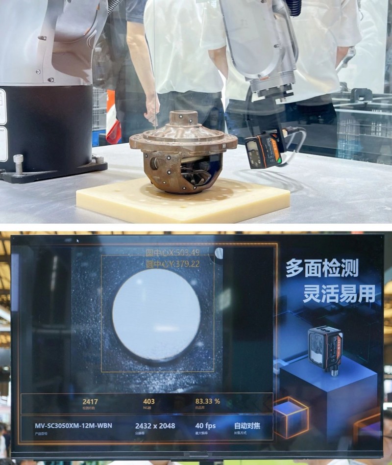集成像、算法、存儲、通信于一身的SC3000X系列視覺傳感器,體積小巧,外觀緊湊,安裝更加靈活,內(nèi)部嵌入了讀碼、有無、正反、測量、識別和計(jì)數(shù)等防錯(cuò)檢測算法,搭配機(jī)械臂對鑄造件的各個(gè)面進(jìn)行碼信息、字符信息的檢測。