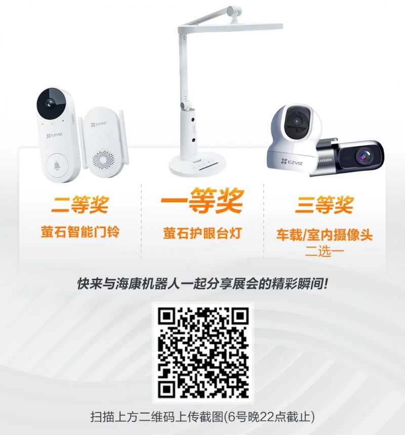 拍抖音,贏大獎!7月3-5日,在抖音上發(fā)布與海康機(jī)器人汽車展相關(guān)的原創(chuàng)視頻,參與話題:#海康機(jī)器人、#汽車制造、#上海汽車裝備展/AMTS,并在7月6號晚22點(diǎn)前掃描二維碼上傳視頻閱讀量截圖,即可領(lǐng)取周邊禮品一份,更有豐富大獎等您來拿!
