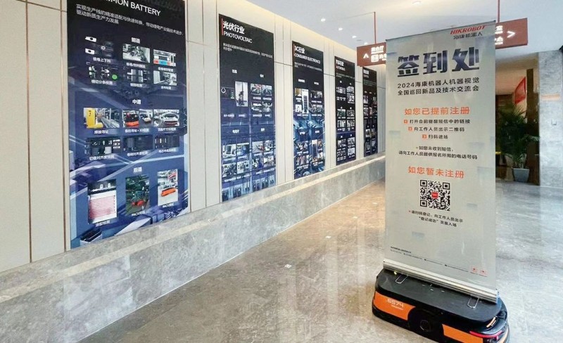 昆明站創(chuàng)新性地將機(jī)器視覺與AMR相結(jié)合,AMR載著機(jī)器視覺的易拉寶現(xiàn)場(chǎng)穿梭,為與會(huì)者傳遞活動(dòng)信息,吸引了許多關(guān)注。