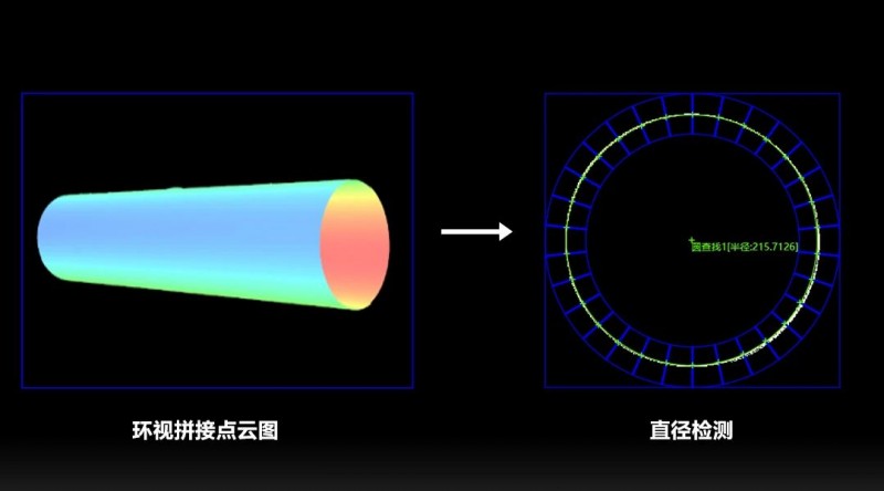 相比傳統游標卡尺/測徑儀的測量方式,環視拼接可實現物料在線、非接觸式直徑測量和表面缺陷檢測;相比單輪廓傳感器方案,獲取信息更加全面,效率更高。