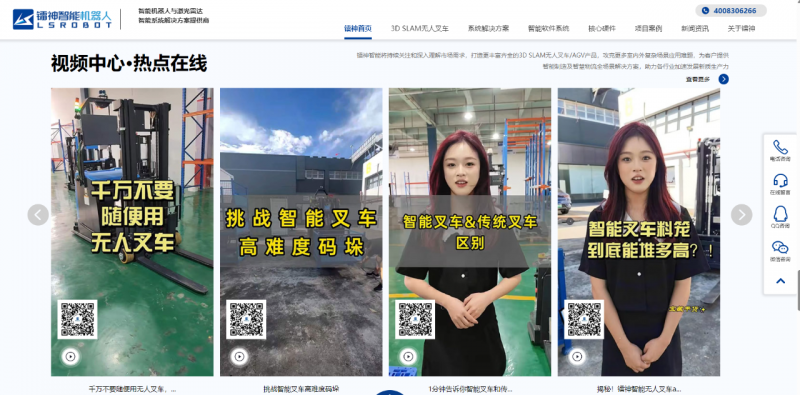 官網精心設計了3D SLAM無人叉車系列產品矩陣展示區,從輕量搬運式到前移式,再到室外平衡重式無人叉車,全方位覆蓋不同行業、不同場景的需求。