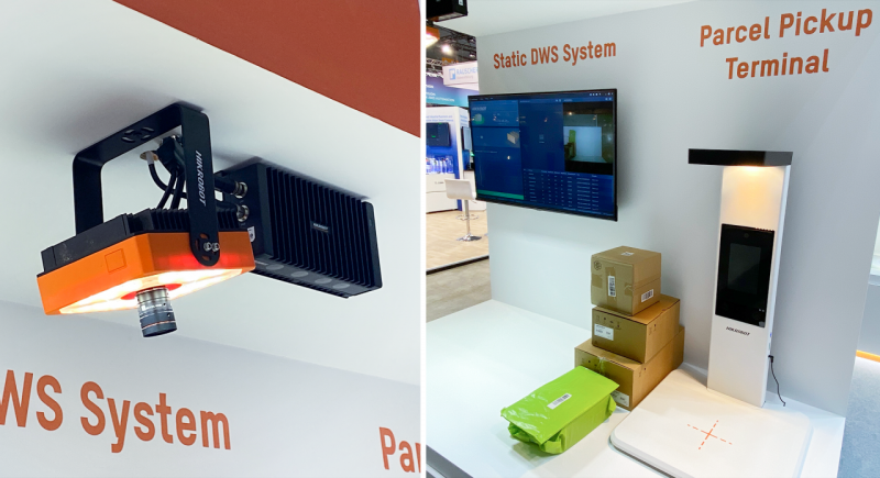 該區域展示了??禉C器人靜態DWS方案:在物流信息收集過程中無需人工干預,可以自動收集基礎數據,適用于多種類型(如黑色、高反光、薄片、異形件等)包裹的體積測量。