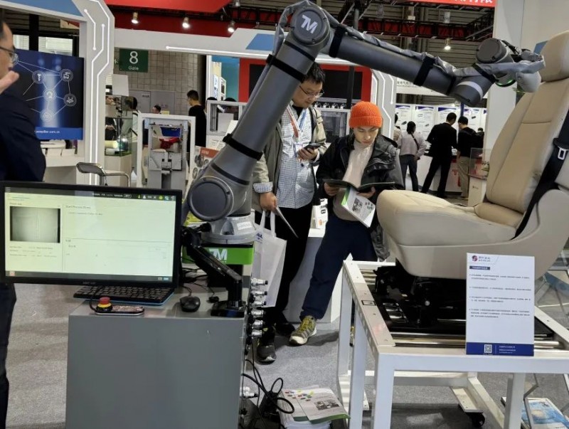 在慕尼黑電子生產(chǎn)設備展(Productronica China)的現(xiàn)場,達明機器人合作伙伴所展示的汽車座椅外觀檢測應用,充分彰顯了視覺飛拍技術在外觀瑕疵檢測方面的優(yōu)勢。