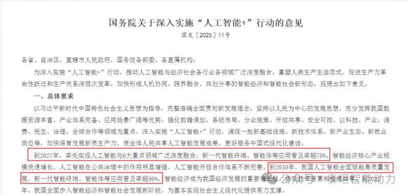 2025年8月26日,國務(wù)院正式發(fā)布《關(guān)于深入實施“人工智能+”行動的意見》(以下簡稱《意見》),明確提出到2027年新一代智能終端普及率超70%、2030年智能經(jīng)濟(jì)成為核心增長極的戰(zhàn)略目標(biāo)。在這場以AI為引擎的產(chǎn)業(yè)變革中,移動機(jī)器人作為連接物理世界與數(shù)字空間的“智能終端”,正迎來前所未有的發(fā)展機(jī)遇。而在這場變革中,泰坦智能憑借其全場景充電解決方案,成為推動移動機(jī)器人產(chǎn)業(yè)升級的關(guān)鍵力量。