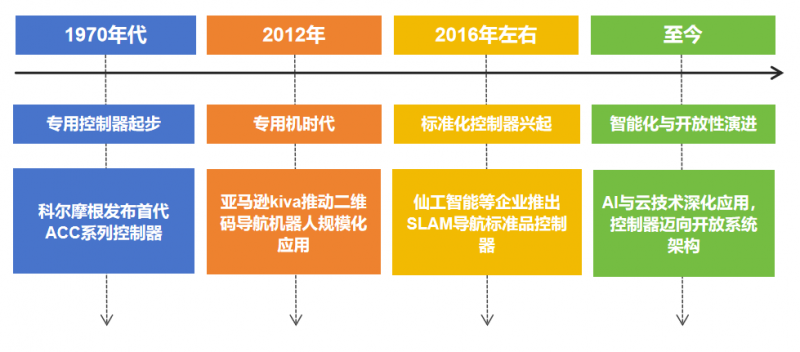 在移動機器人控制器的發展歷程中,作為率先推出專用控制器的廠商,科爾摩根(原NDC),對于行業的發展的推動作用不得不提。自1972年推出第一代ACC系列控制器以來,科爾摩根不斷推動產品迭代與技術演進——從早期的VMC500、CVC600到如今的CVC700系列,其NDC解決方案逐步確立了AGV控制系統的功能框架與工程標準,為后續各類控制器的開發提供了重要參考。其系統化的產品思路與開放式的架構設計,不僅推動了控制器從“專用封閉”向“標準開放”的演進,也降低了移動機器人行業的準入門檻,催生了倉儲、物流、制造等多個場景的創新應用。