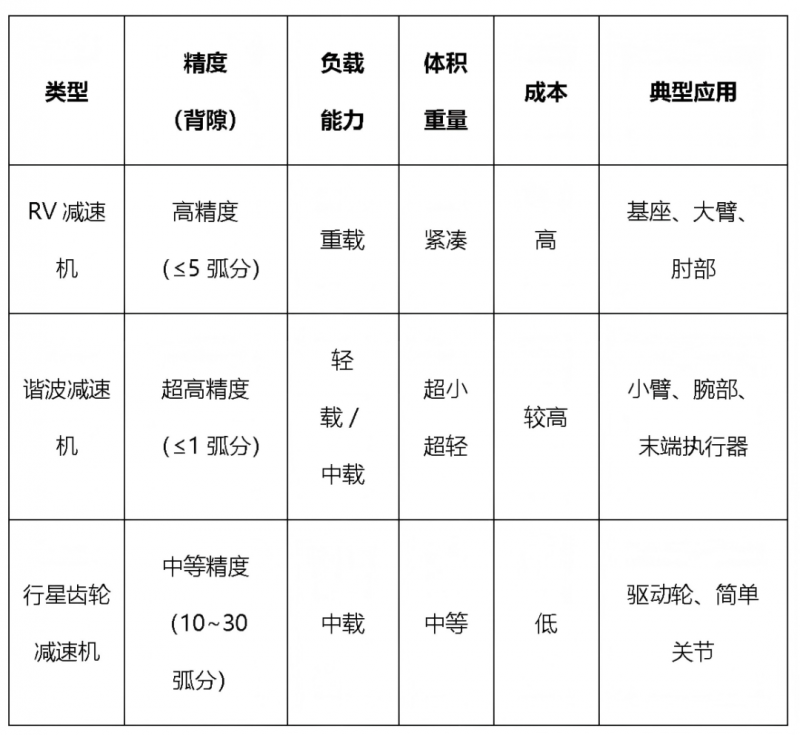 ▲ 不同類型減速機性能特點