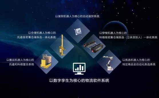其中,以數(shù)字孿生為核心的物流軟件系統(tǒng)是整個智能倉儲物流自動化系統(tǒng)的大腦,其綜合運用精益管理、大數(shù)據(jù)、人工智能等技術,通過嵌入式軟件、業(yè)務應用軟件、商業(yè)智能軟件,對倉儲、分揀、配送、管理、考核等進行全面管控。并能夠實現(xiàn)動態(tài)建模、虛擬仿真、離線調試、3D-SCADA在線監(jiān)控、主動性運維、預防性維護、決策分析等高階應用。