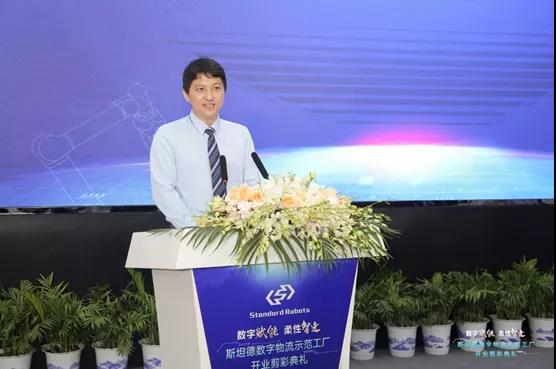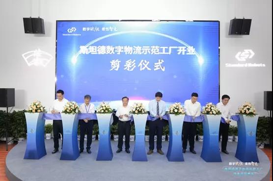 昆山市人大常委會主任張月林、昆山市人民政府副市長張建成、哈爾濱工業(yè)大學副校長張文叢、陸家鎮(zhèn)黨委書記方勇、陸家鎮(zhèn)黨委副書記/鎮(zhèn)長錢璁和斯坦德機器人總經(jīng)理王永錕等眾多領導嘉賓為斯坦德數(shù)字物流示范工廠開業(yè)剪彩,市鎮(zhèn)領導與斯坦德機器人相關負責人共同為斯坦德機器人安全標準測試中心揭幕,并共同參觀了斯坦德數(shù)字物流示范工廠。