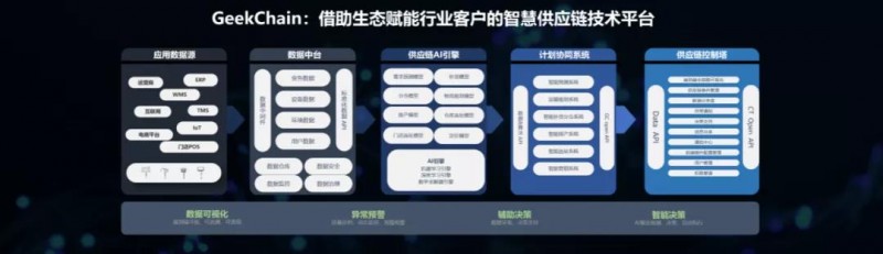 極智鏈(GeekChain):極智嘉極智鏈 (GeekChain) 將作為賦能行業(yè)客戶的智慧供應(yīng)鏈技術(shù)平臺(tái),充分發(fā)揮數(shù)據(jù)中臺(tái)和AI引擎的力量,綜合協(xié)同智能排產(chǎn)、智能選址、智能補(bǔ)貨分倉、運(yùn)輸規(guī)劃、智能預(yù)測(cè)等系統(tǒng),最終成為供應(yīng)鏈控制塔,為企業(yè)提供智能決策。