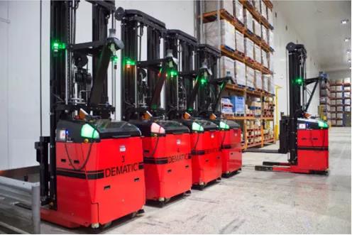 牛津冷庫外,Lactalis Australia在其新南威爾士州利德科姆牛奶工廠采用了德馬泰克自動導引車(AGV)解決方案,德馬泰克的平衡重式AGV負責Lidcombe站點的牛奶托盤運輸,并能夠將重達1.2噸的貨物提升到六米的高度。工作現場是溫度為2到4攝氏度的低溫環境。