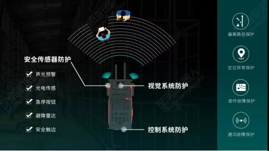 平衡重式無人叉車MW-E系列安全系統采用安全傳感器、算法控制系統、視覺系統等多重防護去提升車輛安全,即從人體工程學等多方面去考慮人機交互場景的安全性,又從無人叉車系統、機械等方面去考慮,360°全方位立體防護,讓無人叉車作業安全更具保障。