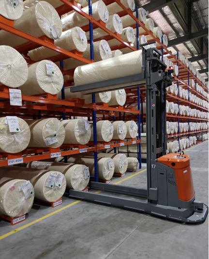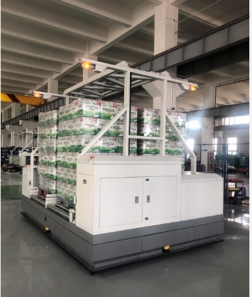 AGV應用場景包括原料、蛋糕卷、成品無人化、智能化精準搬運,實現了在高層貨架的上下架自動搬運、平面倉庫的自動搬運、以及半成品到使用車間的自動配送。