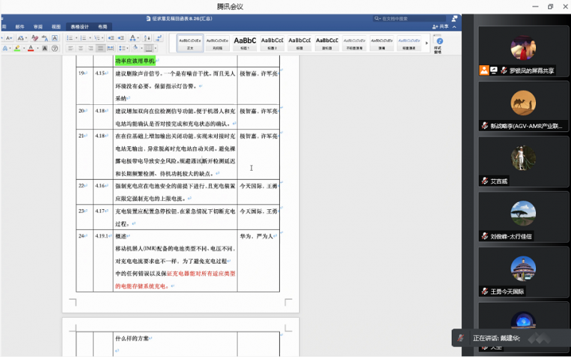 會上,就《工業應用移動機器人  配套件應用技術規范-充電裝置》初稿進行討論,每家企業以及專家都提出了各自修改意見,對標準的修改意見進行了重點討論并達成一致。同時各位專家也闡述了標準技術內容、關鍵問題處理、與現行有關的國家標準的差異等,并建議工作組根據專家審查意見對標準進行修改完善,盡快形成送審稿,報請CMR產業聯盟聯盟團體標準管理委員會發布實施。