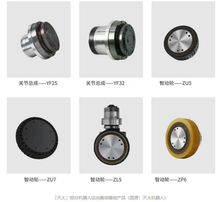 天太機器人還深度整合多個機器人關鍵運動模塊,幫助下游廠商提高生產裝備效率,改善機器人產品性能。例如,天太的智動輪集成了輪子、減速機、電機與驅動器,通過緊湊的一體化結構實現性能體積比的最大化,同時也具備節能及簡便安裝等優點;公司研發的AGV抬升總成幫助AGV廠商在確保高負載輸出的同時,縮小部件體積并且降低綜合能耗,為機器人產品釋放更多的設計空間。