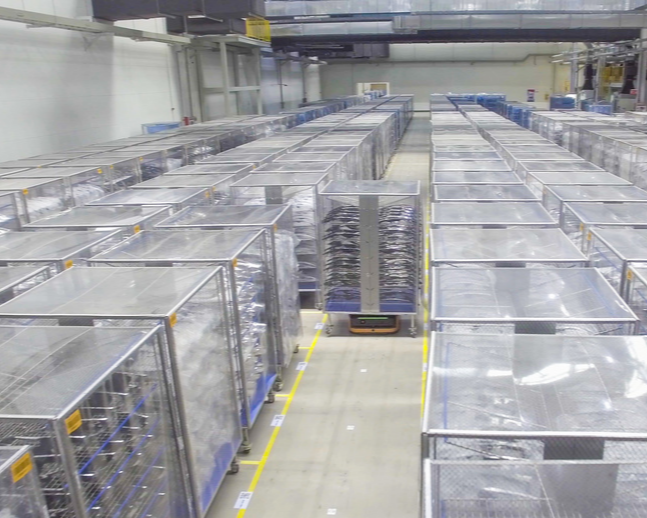 機器視覺產品組成的讀碼門對每個紙箱或料盤上的碼進行識別,高效完成入庫或出庫作業。