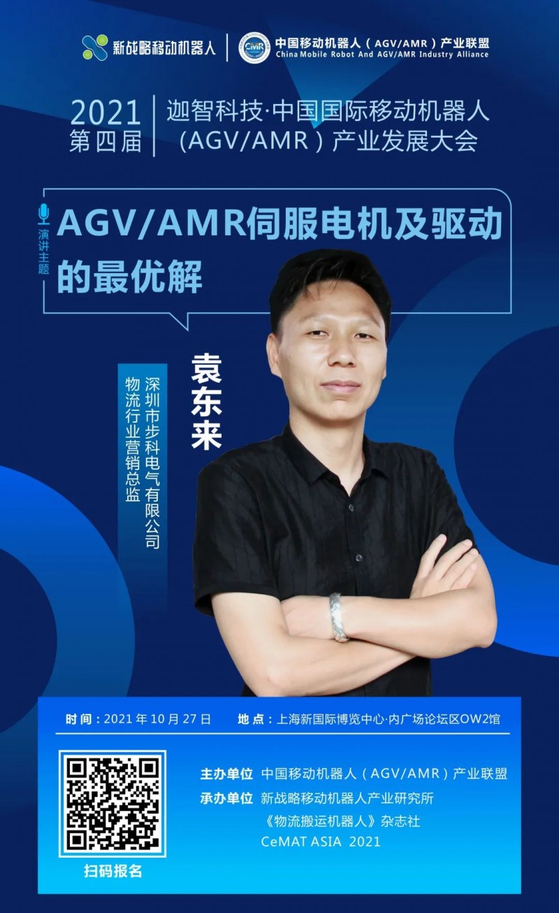 10月27日,在由中國移動機器人(AGV/AMR)產業聯盟主辦的《第四屆國際移動機器人大會》上,步科電氣物流行業營銷總監袁東來將帶來“AGV/AMR伺服電機及驅動的最優解”主題演講,敬請期待!