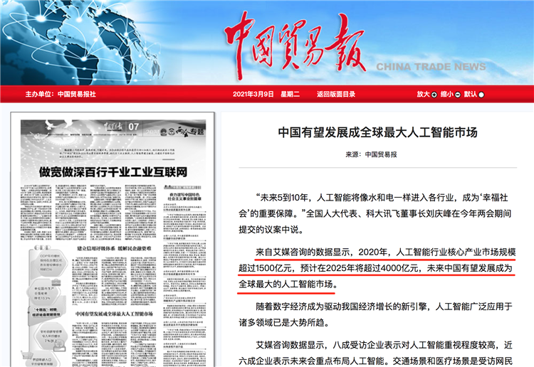 以人工智能為例,中國(guó)作為制造業(yè)大國(guó),為其提供了豐富的應(yīng)用場(chǎng)景。據(jù)艾媒咨詢數(shù)據(jù):2020年人工智能行業(yè)核心產(chǎn)業(yè)市場(chǎng)規(guī)模將超過(guò)1500億元,預(yù)計(jì)在2025年將超過(guò)4000億元,中國(guó)人工智能產(chǎn)業(yè)在各方的共同推動(dòng)下進(jìn)入爆發(fā)式增長(zhǎng)階段,市場(chǎng)發(fā)展?jié)摿薮螅磥?lái)中國(guó)有望發(fā)展為全球最大的人工智能市場(chǎng)。