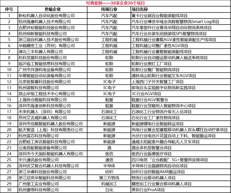 為了更好的宣導(dǎo)和展示從91年國產(chǎn)AGV落地應(yīng)用以來在各行各業(yè)的經(jīng)典案例,以及將案例與技術(shù)相結(jié)合,凸顯行業(yè)前瞻技術(shù)的論文集萃。中國移動(dòng)機(jī)器人(AGV/AMR)產(chǎn)業(yè)聯(lián)盟與新戰(zhàn)略移動(dòng)機(jī)器人產(chǎn)業(yè)研究所聯(lián)合出版了《中國工業(yè)應(yīng)用移動(dòng)機(jī)器人經(jīng)典案例匯編及技術(shù)發(fā)展論文集(2021版)》。具體入選案例名錄如下: