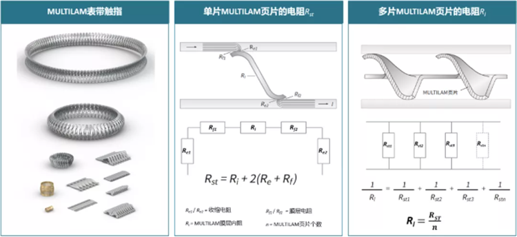 確保大功率充電安全,穩定的低接觸電阻是基礎。史陶比爾領先的MULTILAM技術,采用先進的構造設計和特殊成型的彈性連接元件,通過在接觸面之間建立多個平行接觸點,使其具有極低的接觸電阻和出色的電氣與機械性能。