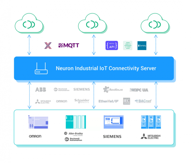 Neuron 為工業(yè)物聯(lián)網(wǎng)的「連接」而生,支持同時(shí)為多個(gè)不同通訊協(xié)議設(shè)備、數(shù)十種工業(yè)協(xié)議進(jìn)行一站式接入及 MQTT 協(xié)議轉(zhuǎn)換,僅占用超低資源,可以原生或容器的方式部署在 X86、ARM 等架構(gòu)的各類邊緣硬件中,助力構(gòu)建工業(yè)物聯(lián)網(wǎng)平臺(tái)與應(yīng)用。