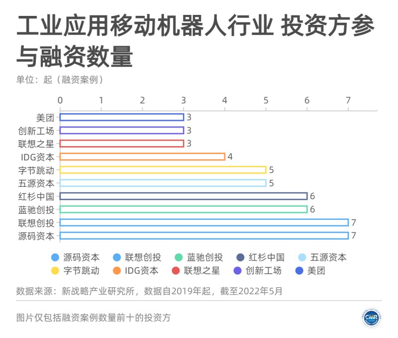 圖片:工業(yè)移動(dòng)機(jī)器人行業(yè)十大資本方參與融資情況【統(tǒng)計(jì)時(shí)間為2019年-2022年5月,不完全統(tǒng)計(jì)】
