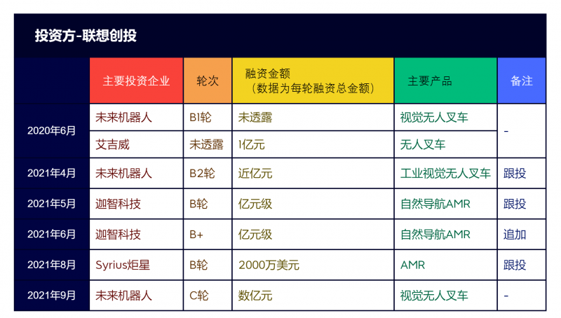 圖:移動(dòng)機(jī)器人行業(yè) 聯(lián)想創(chuàng)投融資事件一覽