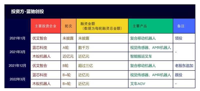 圖:移動(dòng)機(jī)器人行業(yè) 藍(lán)馳創(chuàng)投融資事件一覽