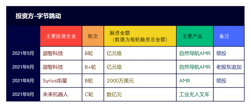 圖:移動(dòng)機(jī)器人行業(yè) 字節(jié)跳動(dòng)融資事件一覽